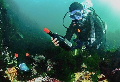 Viticultores y acuicultores unen saberes en una apuesta inédita que tiene al océano como punto de cultivo de los brebajes.