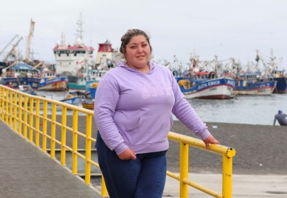 Dedicada al comercio de productos marinos, esta joven mujer asegura que no imagina su vida fuera de la costa de Coronel. Ha sido el lugar que la ha visto crecer junto a su familia, durante generaciones.