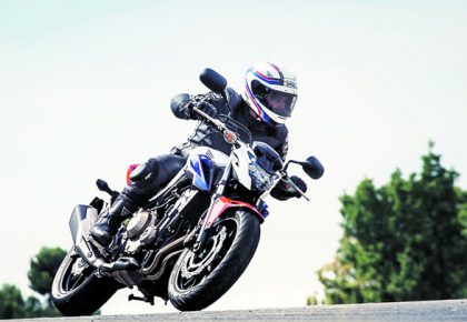 Como es de esperar para una moto con un motor de 500cc, la suspensión delantera posee una horquilla telescópica delantera de 41mm, con 120mm de carrera.