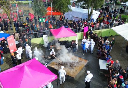 Con 2.000 asistentes, 800 porciones gratuitas y más de 100 kilos de cholga, la Plaza de Lirquén vivió una fiesta gastronómica inédita. La preparación, cocinada al fuego en un disco de 3,2 metros, fue certificada por un notario como primer requisito para postular al Guinness World Records 2026.