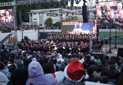 Dando vuelta la página del cambio de fecha por el mal tiempo del fin de semana, la comunidad penquista respondió con creces el llamado de Corcudec para disfrutar de esta imperdible tradición en el Foro y los pastos de la UdeC. Concierto que contempló un programa de reconocidas y clásicas melodías navideñas, las que contaron con la dirección de Jaime Cofré.