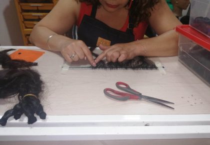 Con cabellos donados en bolsas de papel, a veces con tiernas dedicatorias, las Damas de Fucsia aprovechan el espacio y aprendizaje cedido por un solidario local para elaborar elementos que traerán más de una sonrisa.