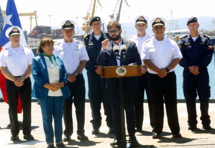 El Mandatario visitó las obras del Buque Magallanes, parte del proyecto Escotillón IV, en Asmar-Talcahuano y también fue parte del zarpe a su operación en la Antártica del Buque Sargento Aldea.