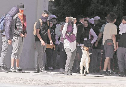 El apedreo tuvo como consecuencia rotura de vidrios y maltrato del símbolo universitario en el acceso al campus, que dejó al menos un detenido, un joven de 15 años.