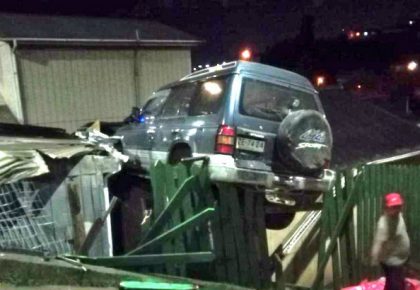 Vehículo queda en el techo de una casa por accidente en Lota