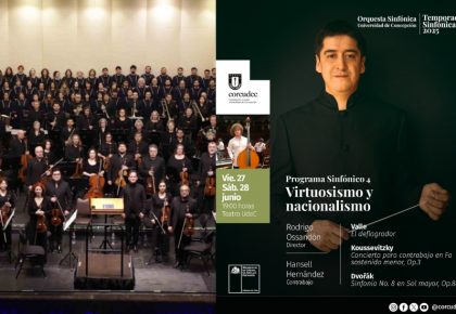 Una obra chilena de estreno, un concierto ruso para contrabajo y una sinfonía checa del siglo XIX se unen en un solo escenario. El Programa Sinfónico 4 de la Orquesta Sinfónica Universidad de Concepción invita al público a sumergirse en un viaje musical diverso y envolvente, que cruza estilos, épocas y culturas en una misma velada.