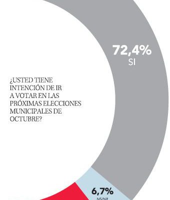 En medio de "las apuestas" de analistas políticos y electorales respecto a la baja participación ciudadana en los próximos comicios municipales (hace unos días el diputado independiente, Pepe Auth, aludió a un 37% del padrón), el Centro de Estudios Corbiobío sorprendió con las cifras de su habitual encuesta de Percepciones Políticas y Contingencia, donde el 72,7% de los consultados manifestó que "tiene intención" de ir a votar el 23 de octubre.