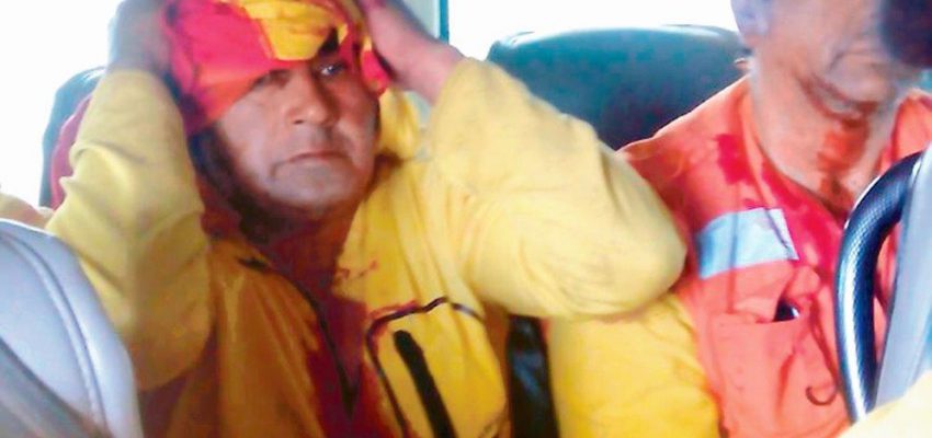Los heridos son Eric Sanhueza Hernández (28) con lesiones de impacto de perdigones a la altura del hombro derecho de carácter grave; Juan Sanhueza Faúndez (45), de labor estrobero, con impacto de perdigones a la altura de la cara, en el costado derecho de la cara y en el cuero cabelludo; Alejandro Garrido Reyes, operador (52) con lesiones de perdigones en la cara y en su cuello; Octavio Marín Jaramillo (34), conductor con impacto de perdigones en sus piernas y Rosendo Figueroa Erices, estrobero (34) con impacto de perdigones a la altura del rostro.