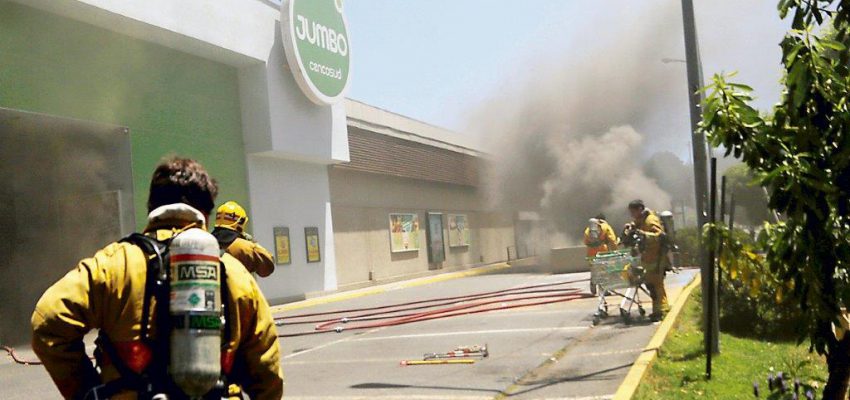 Más de 120 funcionarios de bomberos debieron concurrir hasta el supermercado Jumbo de avenida Pedro de Valdivia luego de que, pasado el mediodía de ayer, un incendio afectara parte de las instalaciones del recinto.