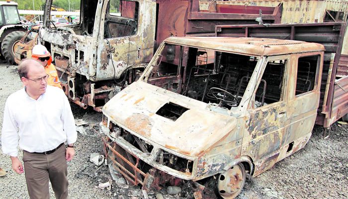 Galpones de materiales destinados a la conservación vial, ocho máquinas pesadas, entre las que encuentran camiones tolva, tractores trozadores, camiones tres cuarto y, además, la quema de dos containers que contenían material de archivo fueron arrasados por el incendio. La pérdida total llega a los $850 millones.