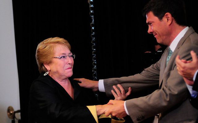Flanqueada por todo el gabinete, la Presidenta Michelle Bachelet anunció esta mañana la renuncia del ministro de Transportes Andrés Gómez-Lobo.