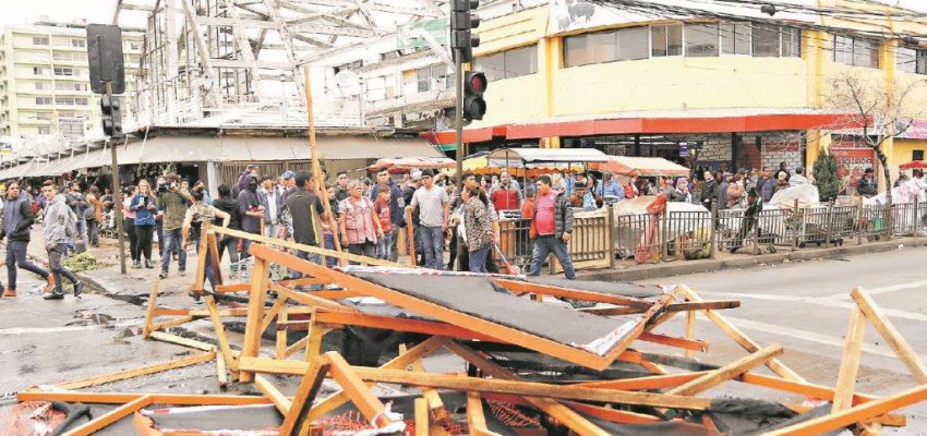 La protesta fue protagonizada por vendedores ilegales que ocupan el sector en rechazo a una intervención de Carabineros en todo el perímetro de calle Caupolicán.